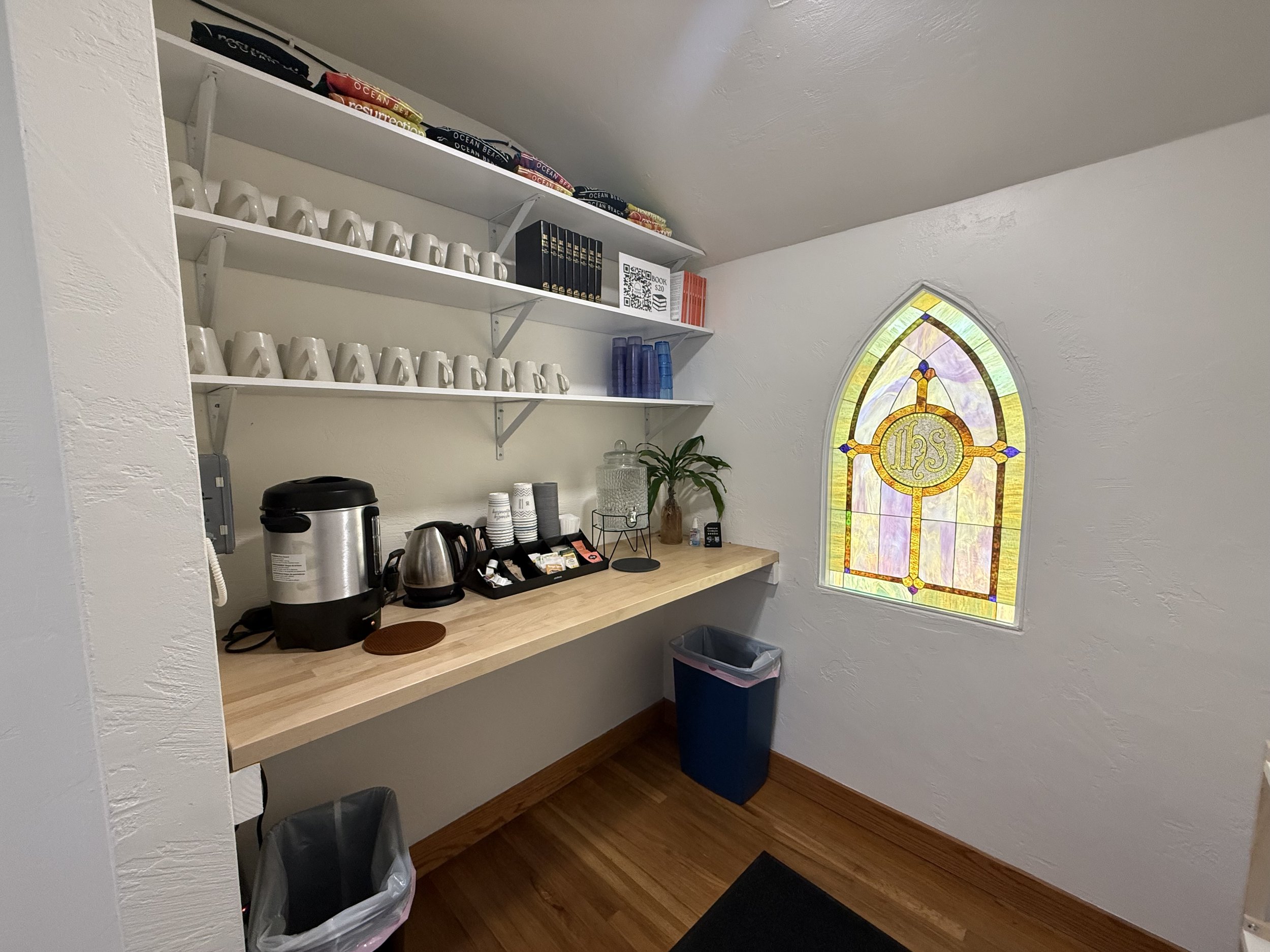 We have coffee and tea available before, after, and even during the service, so feel free to help yourself at any time—that’s part of the casual nature here.